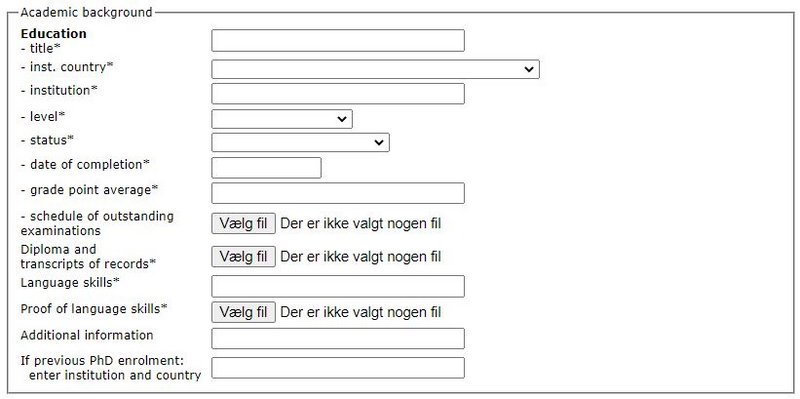 If the attached diplomas/transcript of records are not in one of the main languages (Danish, English, French, German, Norwegian or Swedish), you must attach an authorised English translation of the diplomas/transcript of records as well as a copy of your original diploma.