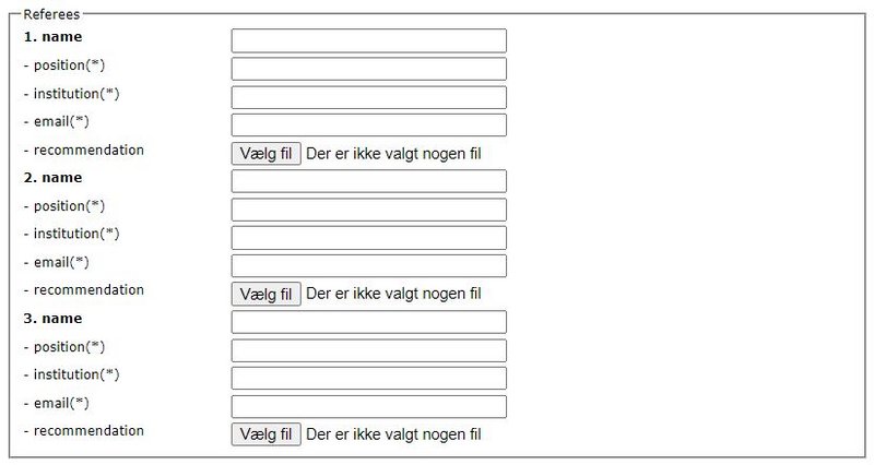 You are requested to obtain a prior consent from at least one referee but not more than two referees. Fill out the contact information (name, job title, institution, and email address) in the application form and upload the consent from each referee that is not employed by Aarhus University. The consent must state that the Graduate School may contact the referee to ask him or her for a confidential statement.
